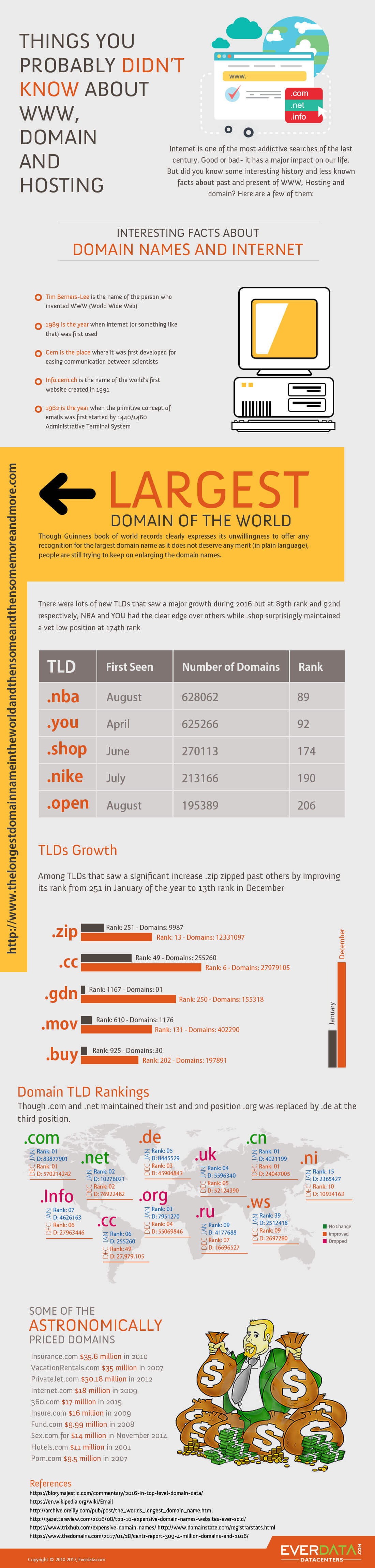 The following infographic will take you through some fascinating facts and history of domains, internet and www:
