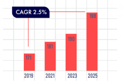 Overall, the global market is expected to see cumulative investments of over ~$1.3 trillion during 2019-2025, with 2020 set to witness fastest growth at 3.6% y-o-y, due to demand for datacentre capacity surging post the pandemic, as more users are being pushed online.