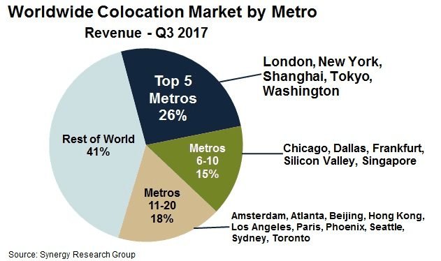 As per the data from Synergy Research Group, 59% of the global retail and wholesale colocation revenues came from just 20 metro cities.