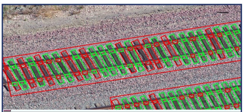 As you can see from the image, we are able to detect cracks on the wooden ties. We can also detect missing nuts on the plates. In addition, we have demonstrated our capabilities in detecting other classes of defects such as skewed ties and foreign objects on or near tracks.