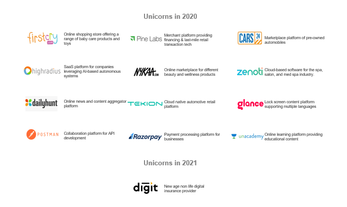 - Unicorns are emerging in diverse sectors like – Automotive, EdTech, Advertising & Marketing Tech, SCM & Logistics & Food Tech