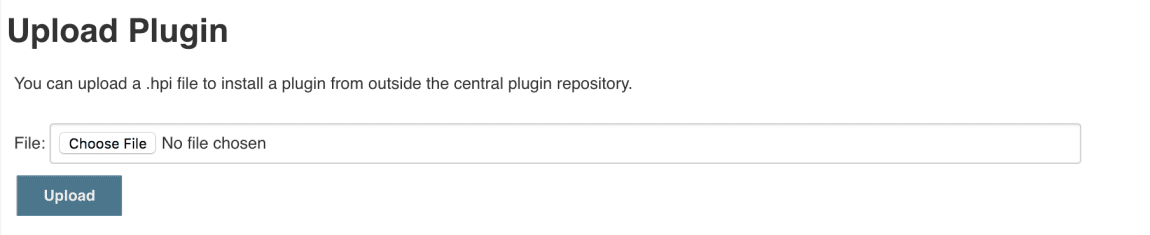 Click Choose File and then find the newly created Helloworld Jenkins plugin, which should be in the directory:
